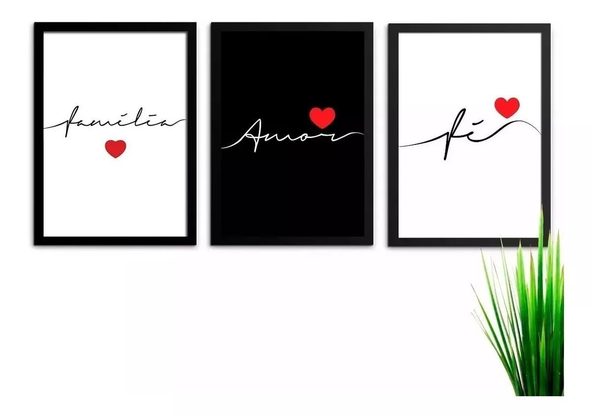 Kit 3 Quadros Decorativos Frases Amor Paz Familia Quero Mais Quadros Loja De Quadros Decorativos - E a forma de nos expressar atraves das imagens, uma parede nua e um espaco de possibilidades.